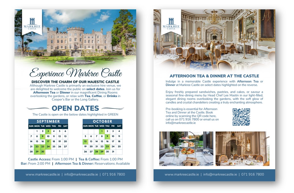 Although Markree Castle is primarily an exclusive hire venue, we are delighted to welcome the public on select dates. Join us for Afternoon Tea or Dinner in our magnificent Dining Rooms overlooking the gardens, or relax with Tea, Coffee, or Drinks in Cooper’s Bar or the Long Gallery.
